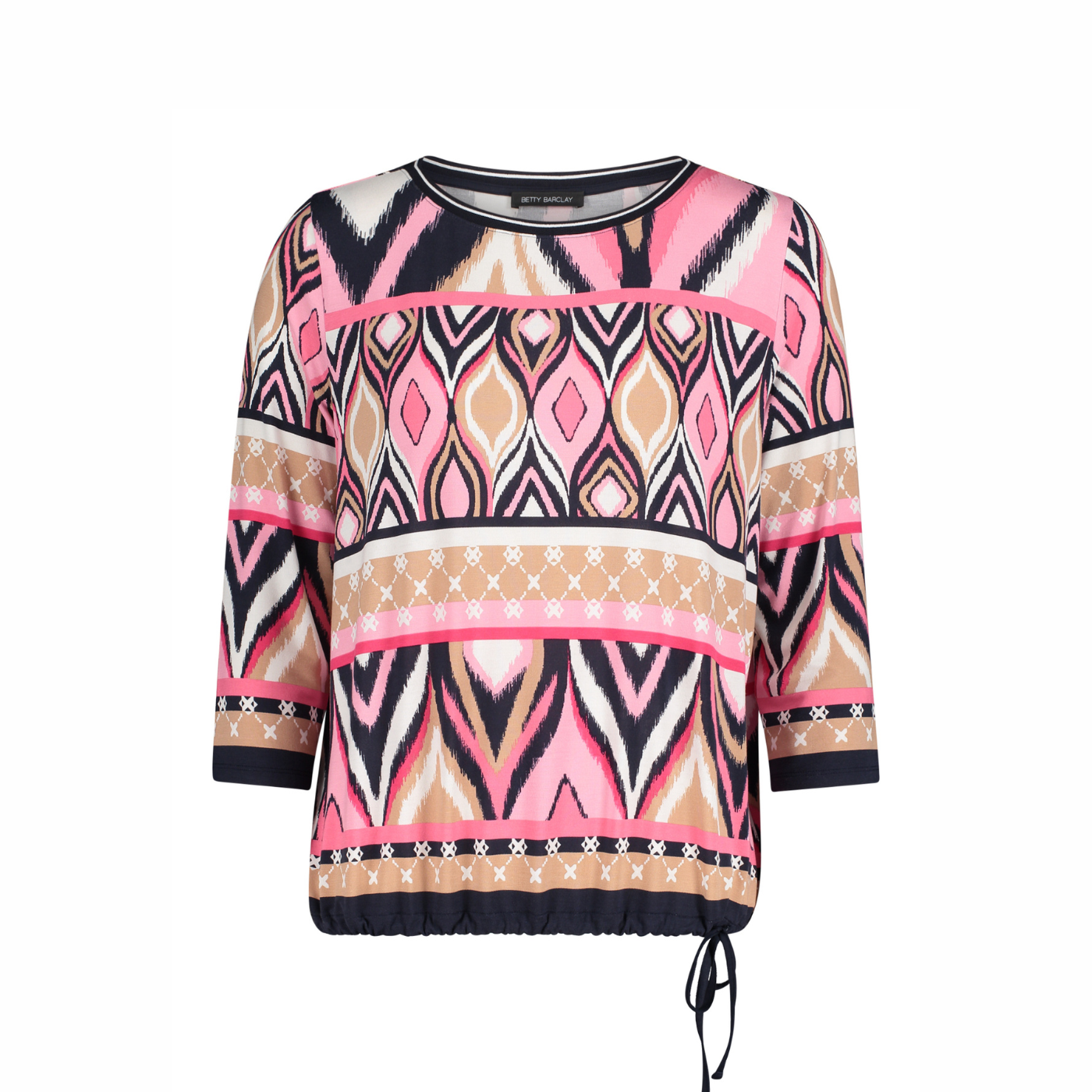 - Geoghegans Notes: A refined and versatile blouse from Betty Barclay, designed to bring effortless style to your everyday wardrobe. Featuring a graceful blend of pink and dark blue tones, this blouse offers a timeless look with a modern touch. The 3/4 length sleeves provide comfortable coverage while remaining light and flattering, making it ideal for year-round wear.
