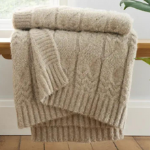 • Geoghegans Notes: Add warmth and texture to your home with the luxurious BIANCA Cable Knit Throw. Measuring 150x200cm, this beautifully crafted throw features intricate cable knitting and a luxurious natural hue, perfect for draping over a sofa or bed. Made from soft acrylic, it offers both comfort and style, making it an inviting and versatile addition to any room. Enhance the ambiance of your space with this cozy and elegant accessory.