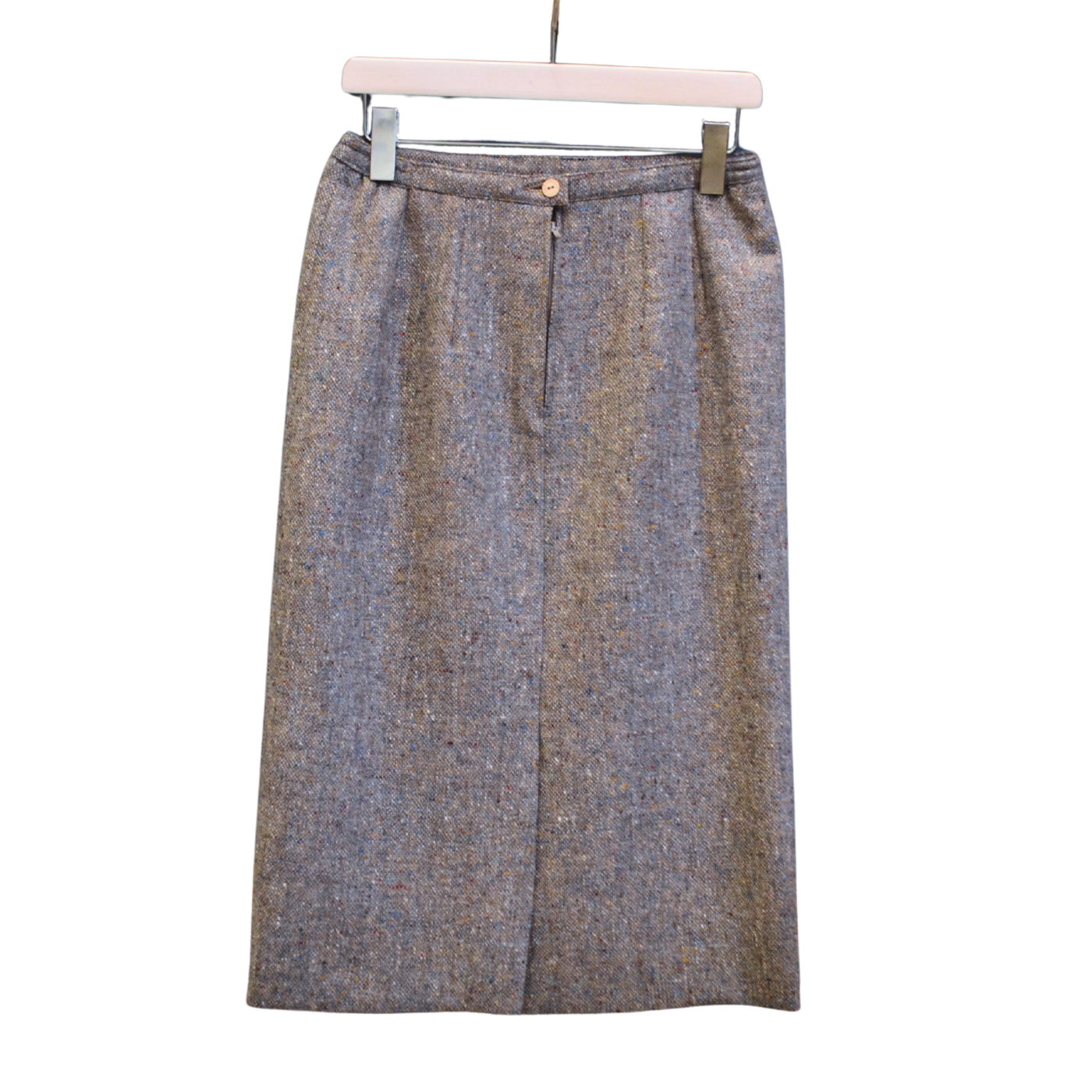 • Geoghegan's Notes: A classic taupe skirt with delicate tweed detailing, crafted in a straight, tailored silhouette that flatters every figure. Fully lined for ease and comfort, it’s perfect for work, smart-casual outings, or layered with seasonal knits for a polished, versatile look. Timeless in style, this skirt offers understated elegance with everyday wearability.