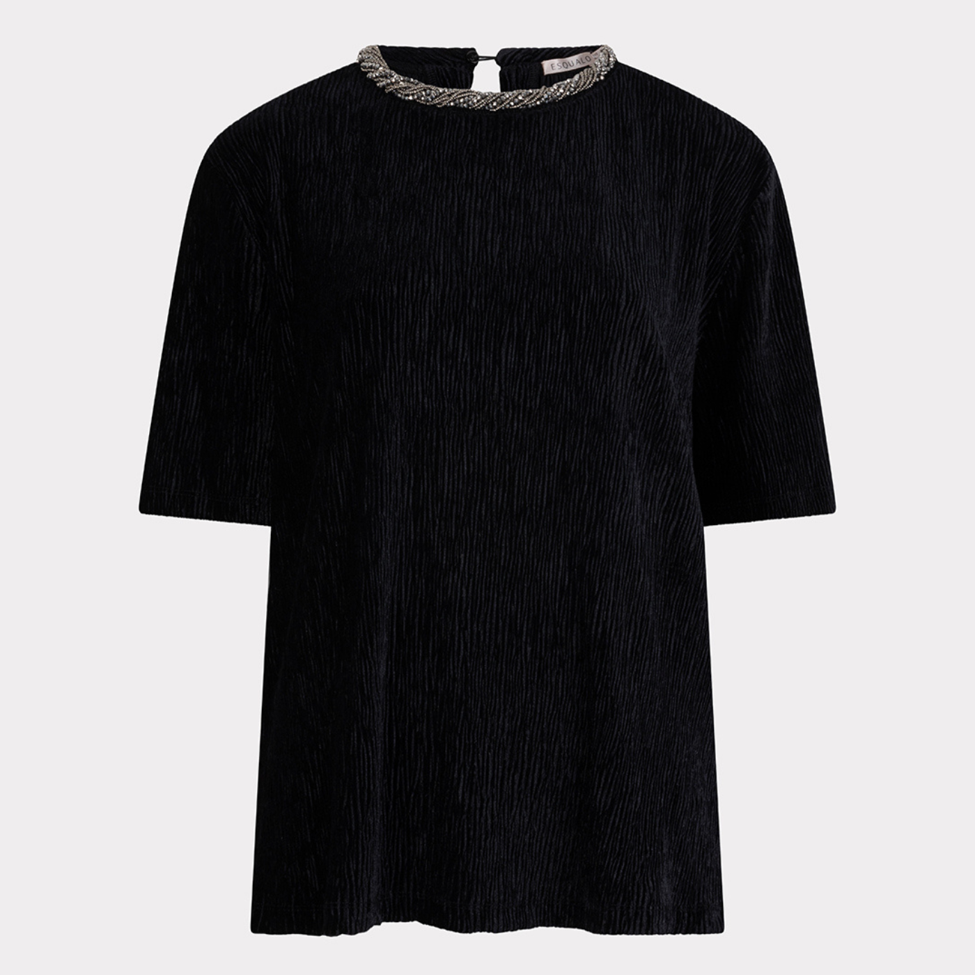 - Geoghegan's Notes: Upgrade your wardrobe with the Esqualo Velour Top, a must-have women’s velour top that combines elegance and comfort. Made from soft, high-quality velour, this black top drapes beautifully for a flattering silhouette and timeless style. Perfect for pairing with tailored trousers, skirts, or jeans, it’s ideal for work, evenings out, or casual occasions.