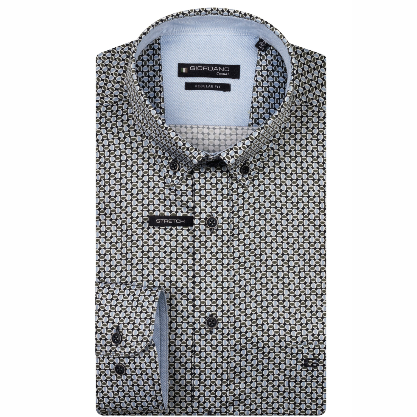 - Geoghegans Notes: Update your casual wardrobe with the Giordano Print Stretch Long-Sleeve Shirt. Designed with a subtle circle print and a comfortable stretch fabric, it offers effortless style and flexibility, making it perfect for both relaxed weekends and smart-casual occasions.