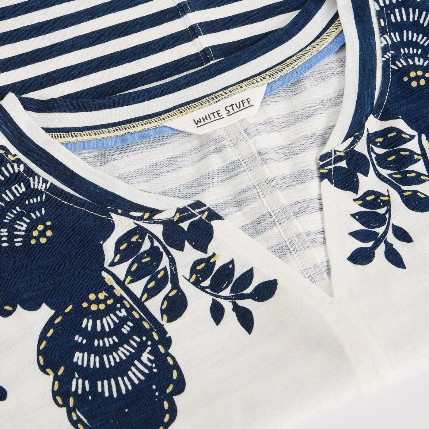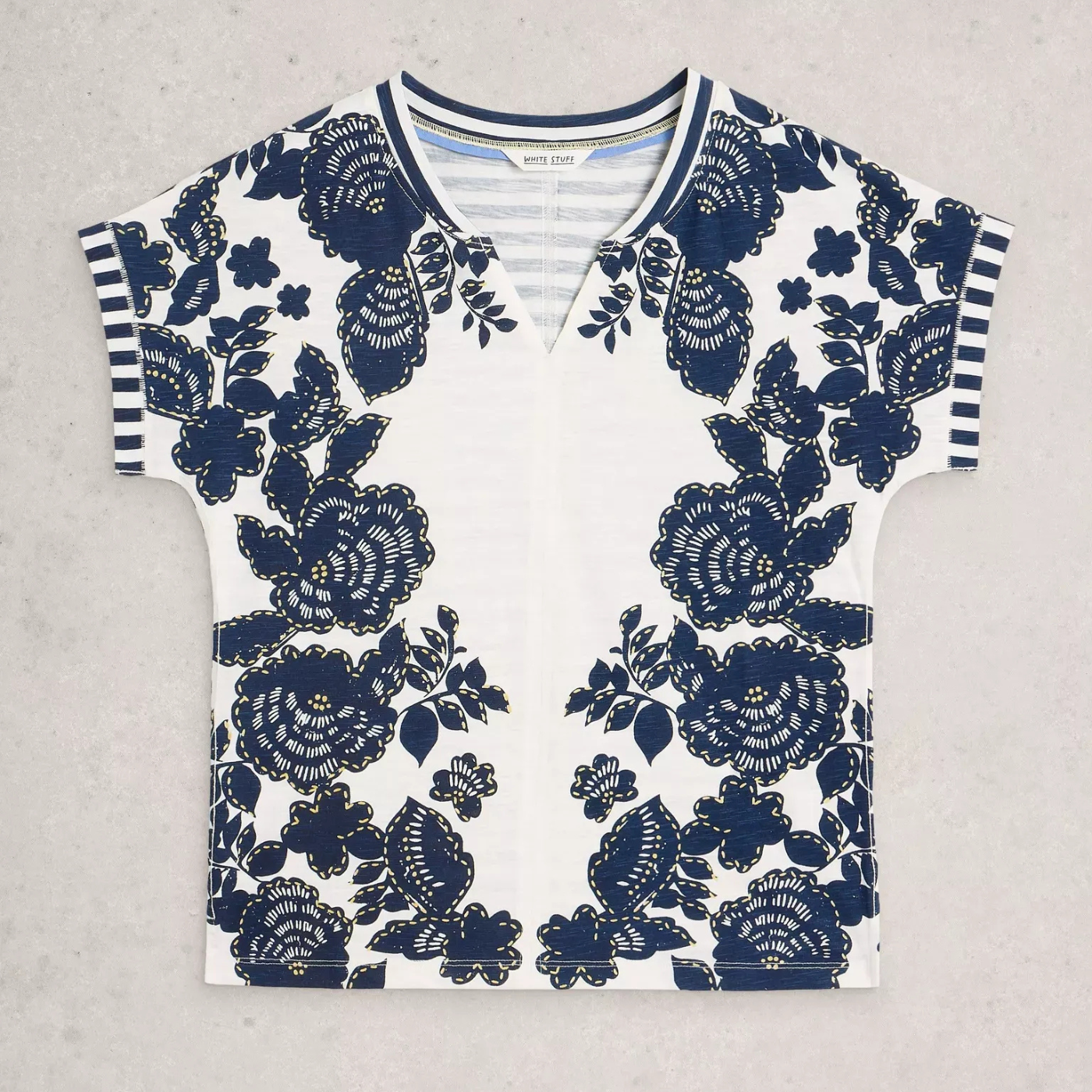 • Geoghegans Notes: A fresh take on an everyday favourite, the Nelly Notch Neck Print Tee in Navy Multi brings effortless style to your casual wardrobe. Crafted from 100% organic cotton for a soft, breathable feel, it features a flattering notch neckline and an eye-catching all-over print. Easy to pair with jeans or chinos, it’s a comfortable, reliable choice you’ll reach for time and again