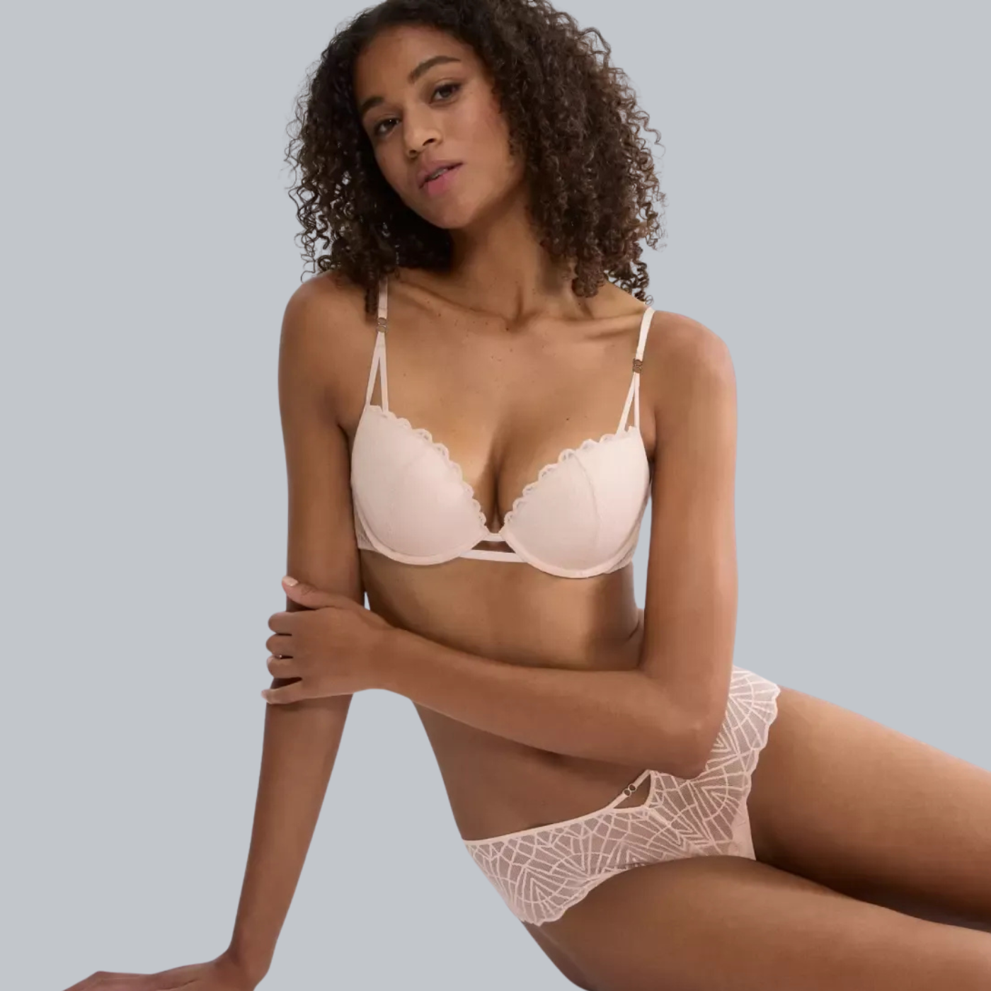 • Geoghegans Notes: Add a touch of glamour to your lingerie with the Triumph That Night In Vegas Push-Up Bra in a soft porcelain shade. Designed to lift and enhance, this bra offers a natural, flattering shape with subtle push-up support. Its smooth, comfortable fabric and adjustable straps ensure a perfect fit, while the understated elegance makes it ideal for both special occasions and everyday wear. A timeless piece that combines style, comfort, and confidence.