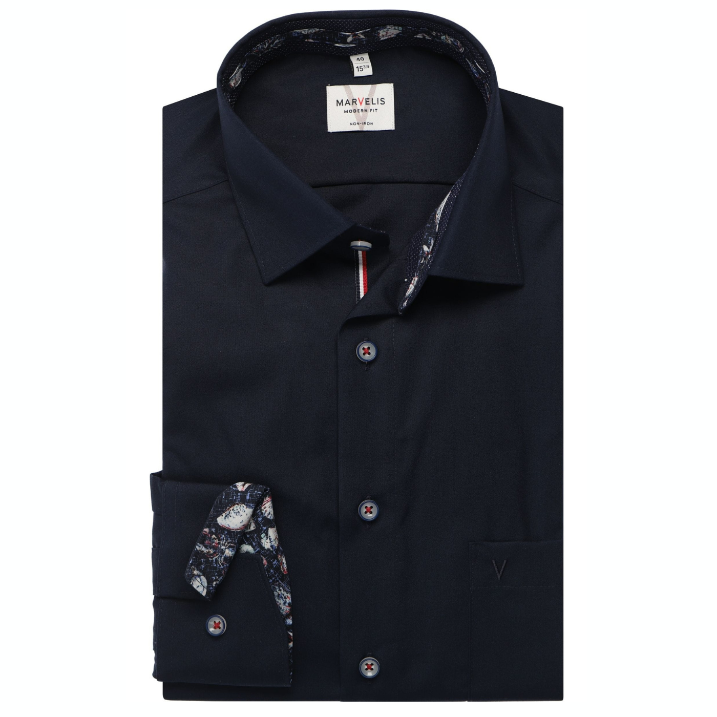 - Geoghegan's Notes: The Marvelis Modern Fit Non-Iron Shirt combines classic tailoring with a touch of modern character. Crafted from high-quality non-iron fabric, it keeps a crisp, polished look throughout the day with minimal effort. The modern fit offers a comfortable, flattering shape, while the subtle floral trim inside the collar and cuffs adds a stylish detail that sets it apart. Perfect for both business and smart-casual occasions, it’s a dependable shirt that brings together tradition, comfort, and contemporary style.