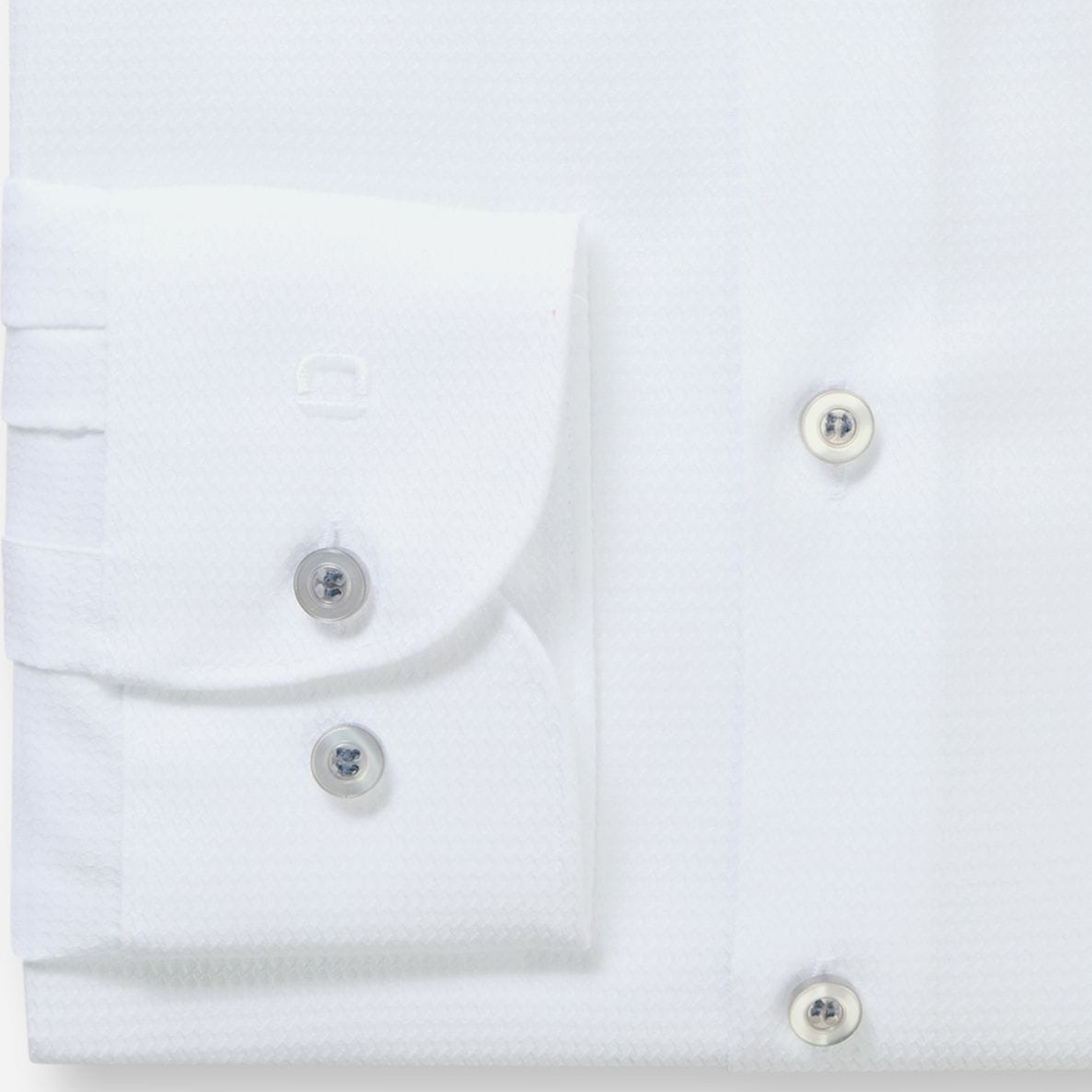 - Geoghegan's Notes: Elevate your formal wardrobe with the Olymp Body Fit Micro Weave Long Sleeve Shirt in White a sharp essential designed for a clean, contemporary silhouette. Tailored in a streamlined body fit, this shirt sits close to the frame for a modern, confident look without compromising on comfort. The refined micro weave texture subtly enhances the crisp white fabric, adding depth and sophistication while maintaining a classic finish. Crafted from premium breathable cotton with an easy-care treatment, it stays looking fresh and polished throughout the day.