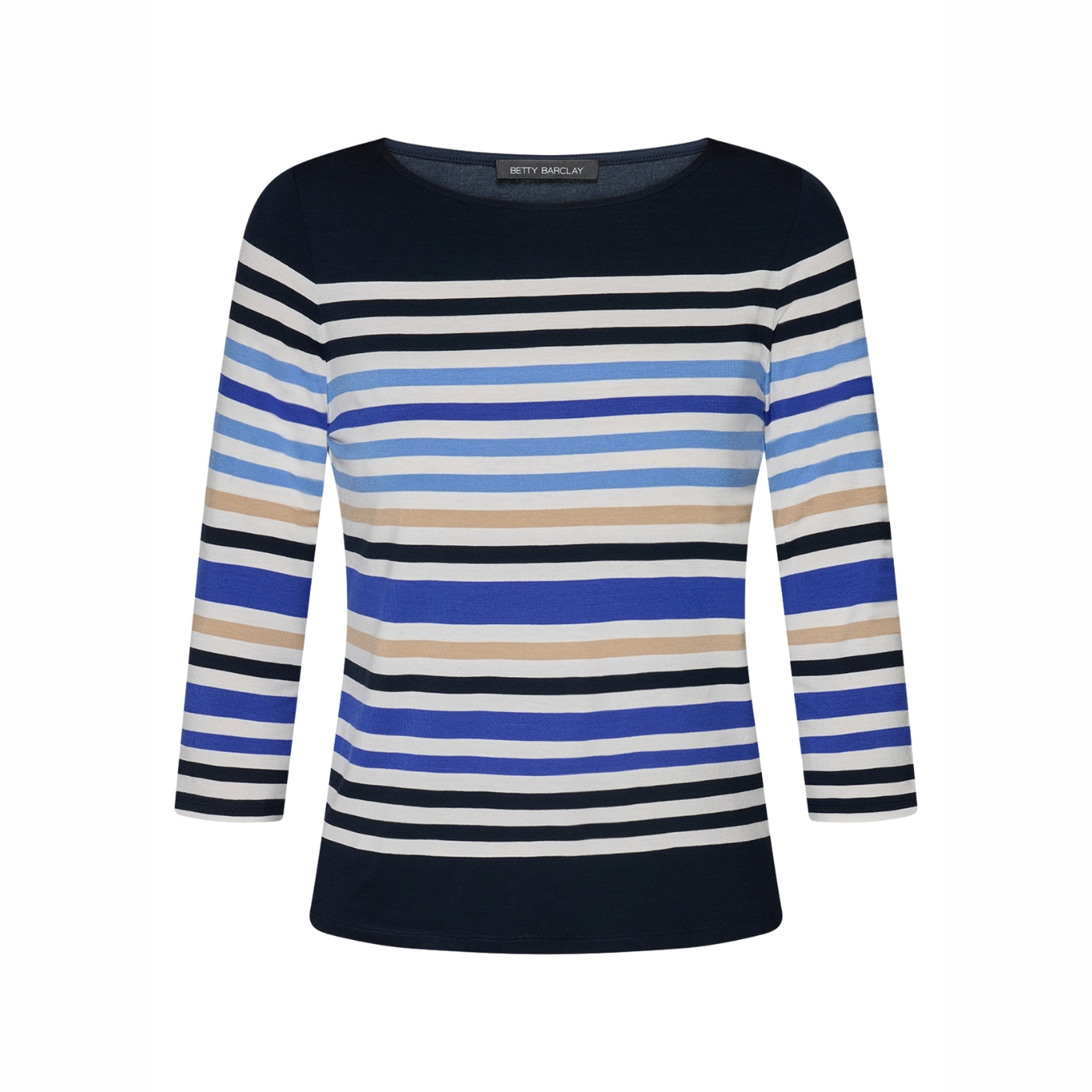 Front image of Betty Barclay 3/4 sleeve Stripy Top, with a white background.