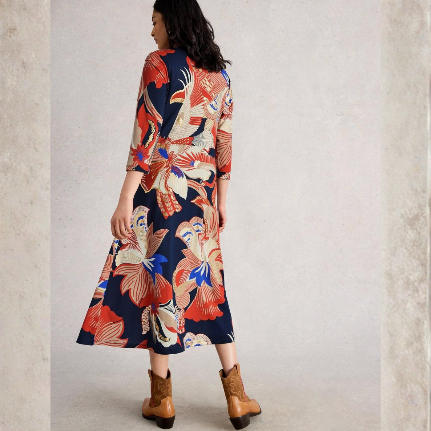- Geoghegans Notes: Fall in love with the beautifully soft fabric, flattering midi length, and subtle floral print of this timeless style. Effortlessly elegant and easy to wear, it’s a piece that stays in bloom season after season.