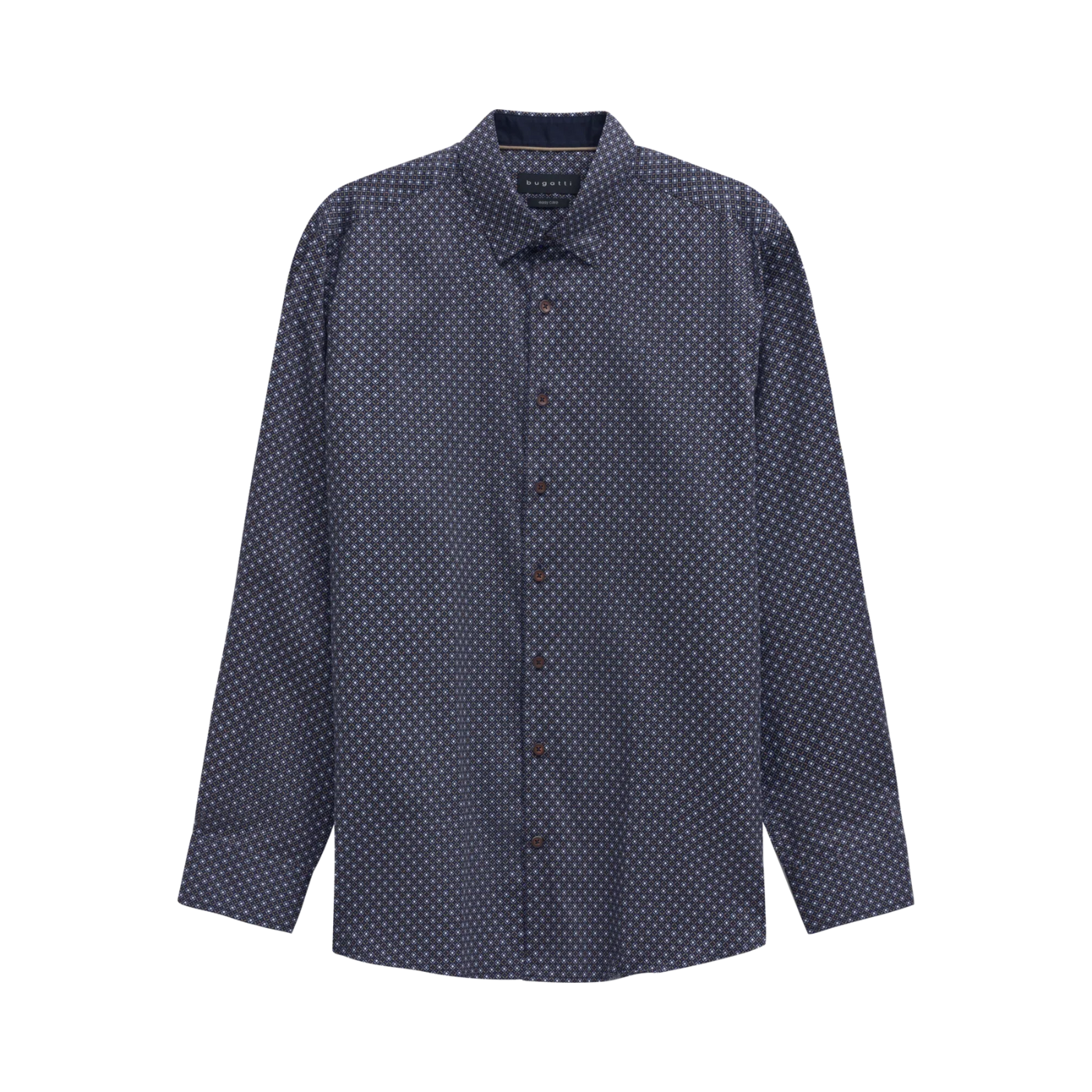 - Geoghegans Notes: The Bugatti Easy Care Geometric Print Long Sleeve Shirt combines smart style with practical comfort. Featuring a subtle diamond print, this shirt is crafted from easy-care fabric that keeps it looking crisp with minimal effort. A versatile piece that works just as well for the office as it does for smart-casual occasions.