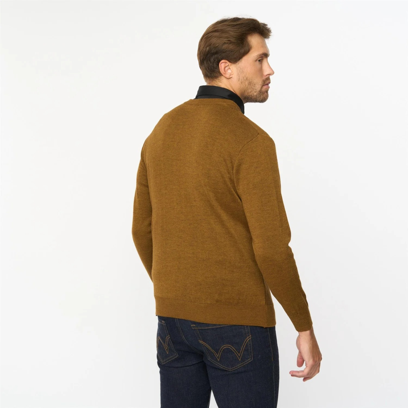• Load image into Gallery viewer, Man wearing a brown sweater with a subtle pattern on a white background