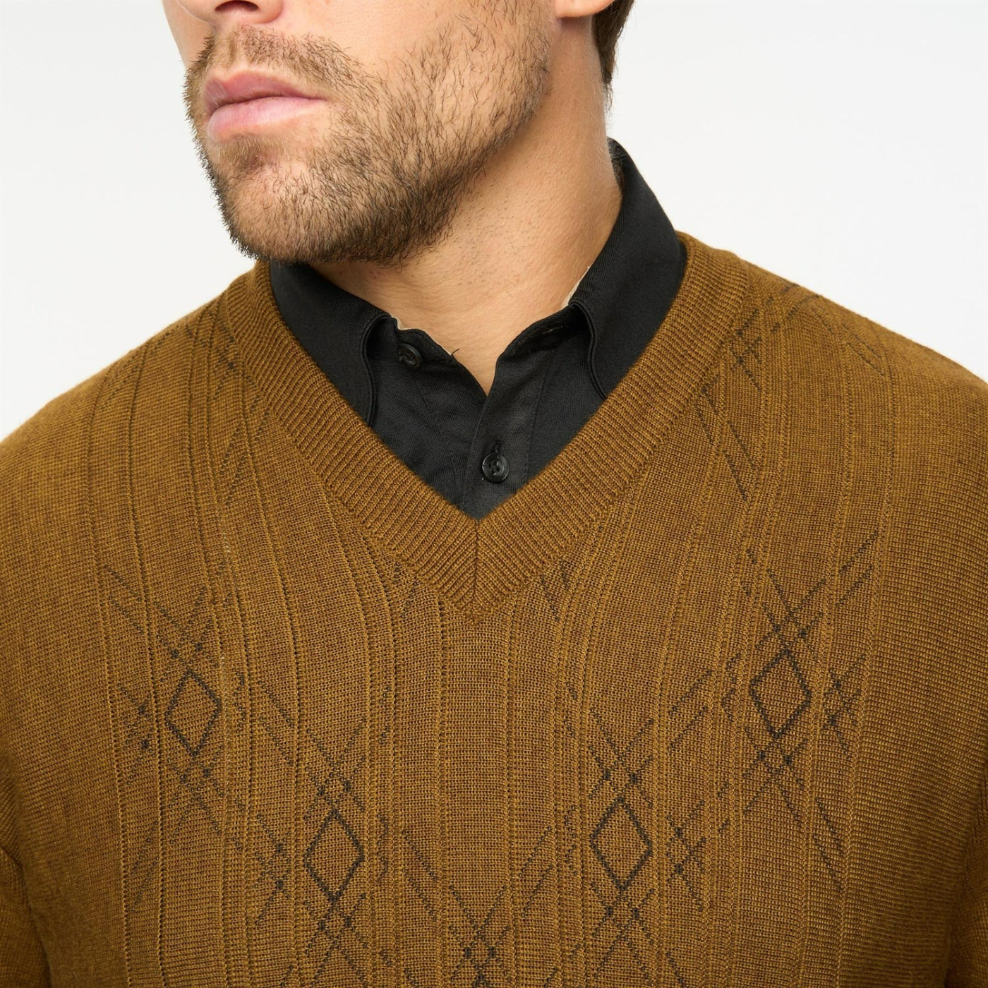 Gabicci Diamond Pattern Wool Mix V-Neck