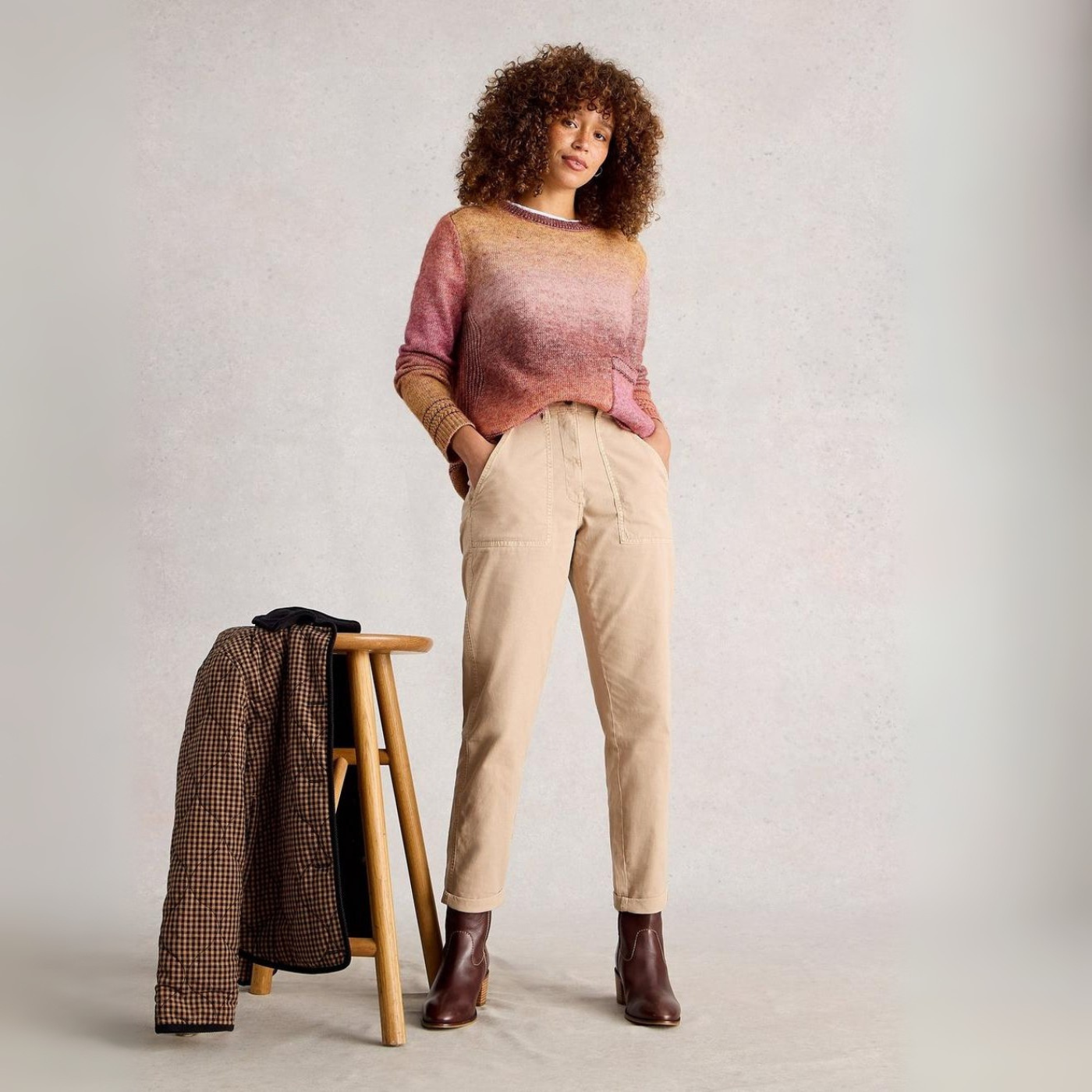 - Geoghegans Notes: A lovely ombré knit with a touch of unique stitched detail—simple yet special. Pair it with your favourite jeans or drape it over a dress for an effortless layered look. Perfect for those relaxed moments, whether you're popping out for coffee or treating yourself to something sweet.