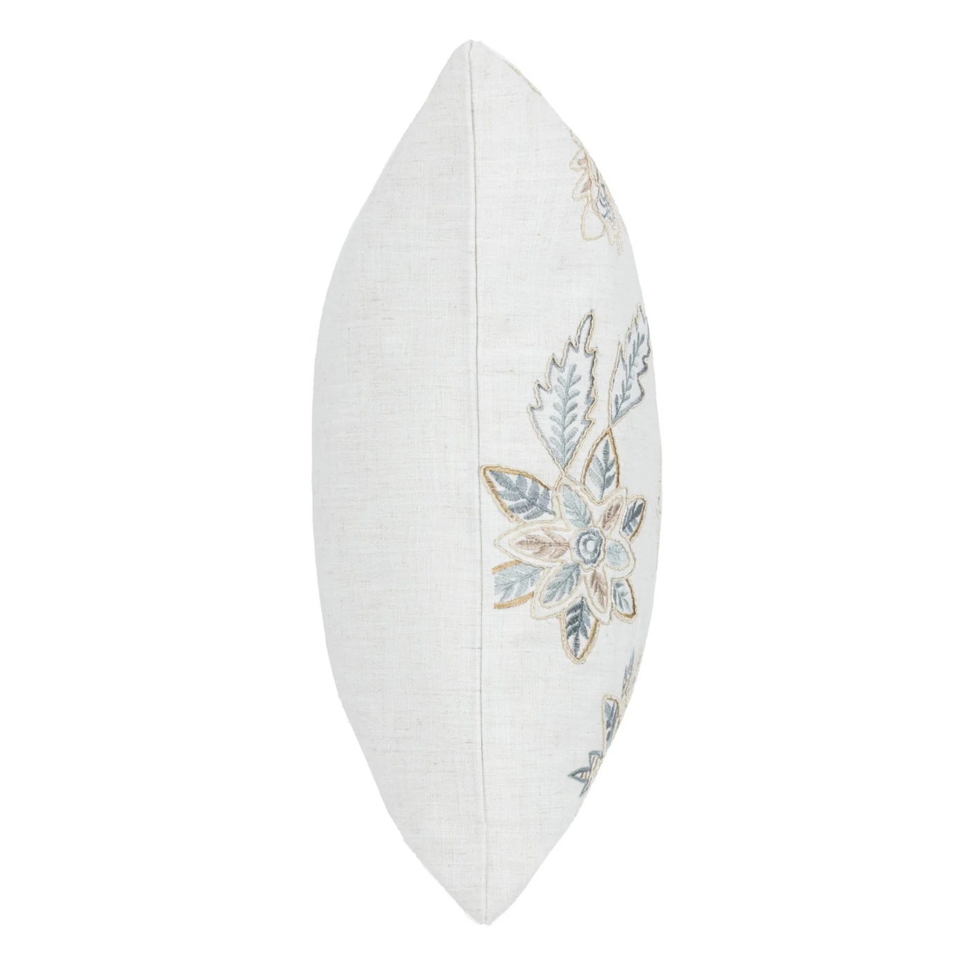 Decorative pillow with floral embroidery on a white background