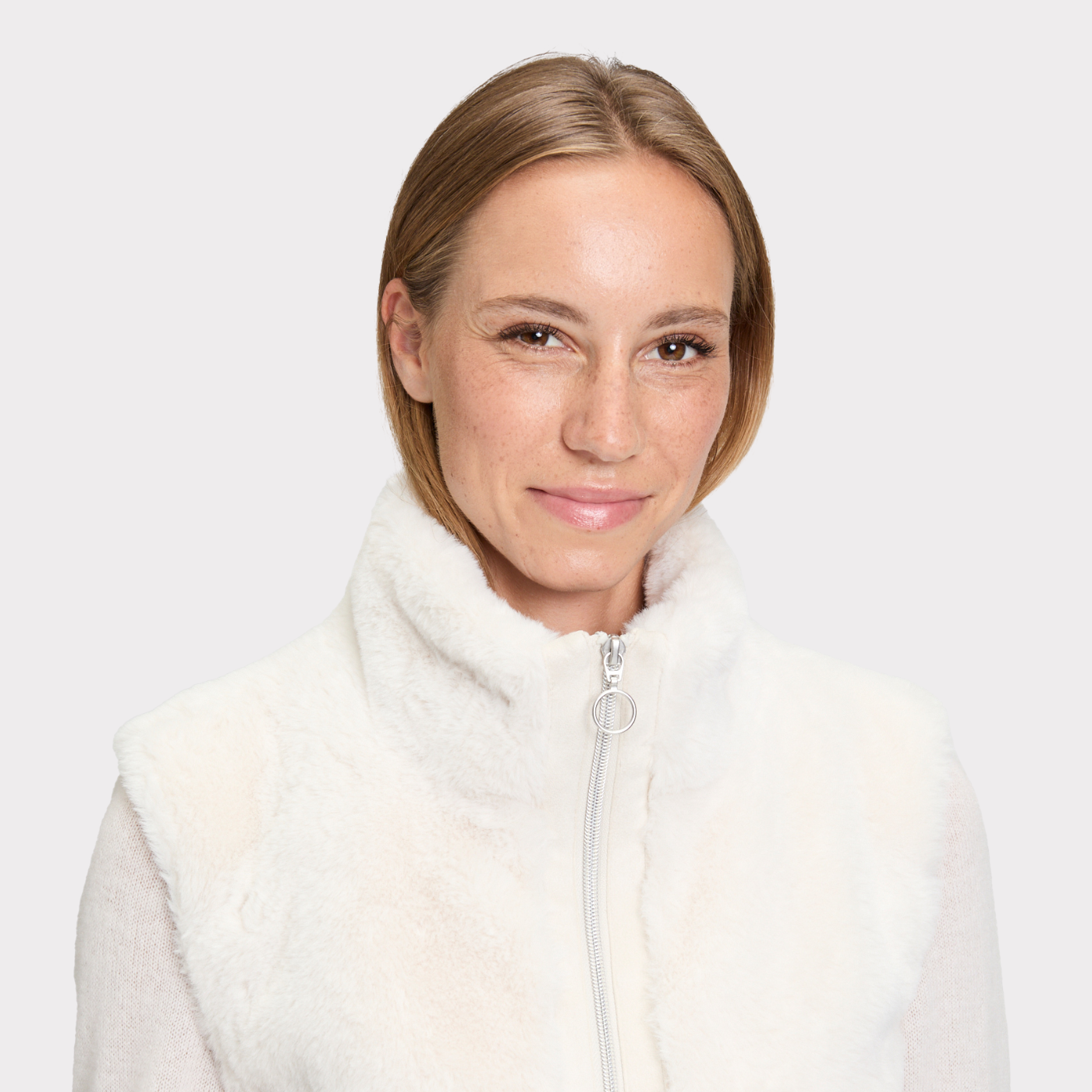 - Geoghegan's Notes: Stay cosy without compromising on style with this Betty Barclay Plush Gilet in Cream. Crafted from luxuriously soft fabric, it provides warmth and comfort while maintaining a sleek, tailored silhouette. The subtle Falcon shade is a versatile neutral, perfect for layering over shirts, blouses, or light sweaters. Designed with practical details, it features a zip fastening and pockets, combining functionality with timeless elegance.