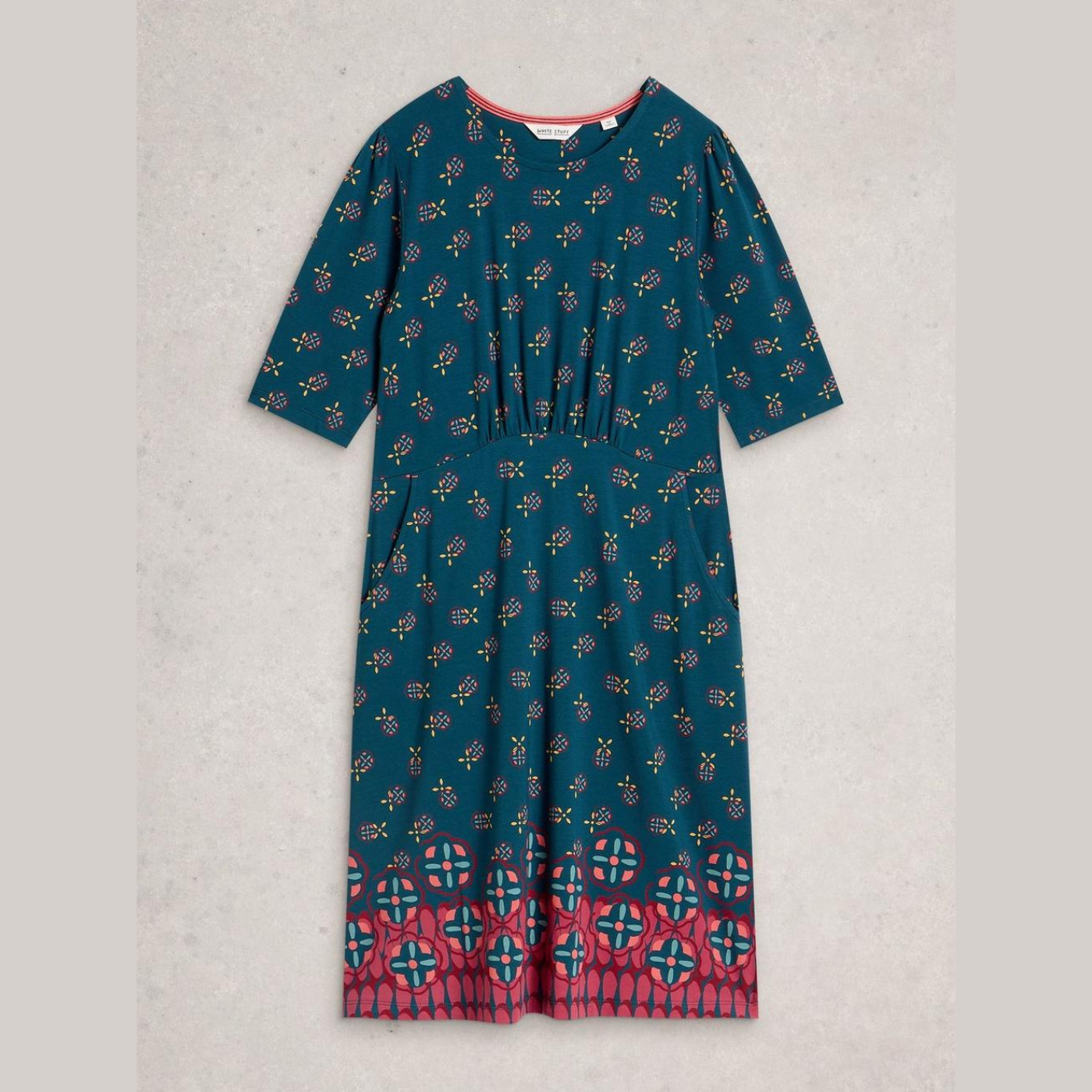 - Geoghegans Notes: This much-loved dress shape returns with a touch more structure in the skirt, giving it a polished, confident feel while still keeping its playful charm. The lively print adds character, and yes—it has pockets, simply because they belong there.