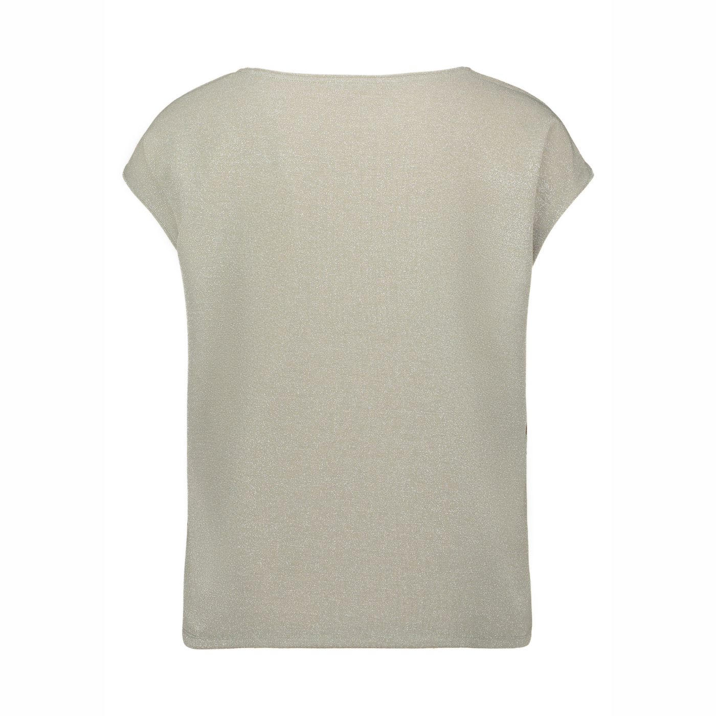 Back view of Betty Barclay Leaves Top in Khaki, on a white background.
