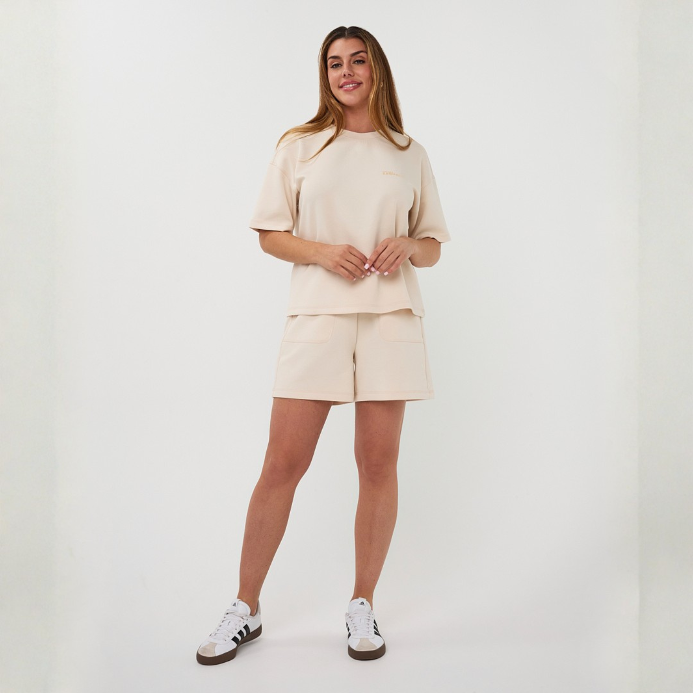 - Materials:. 52% Polyester, 20% Cotton, 20% Modal, 8% Elastane