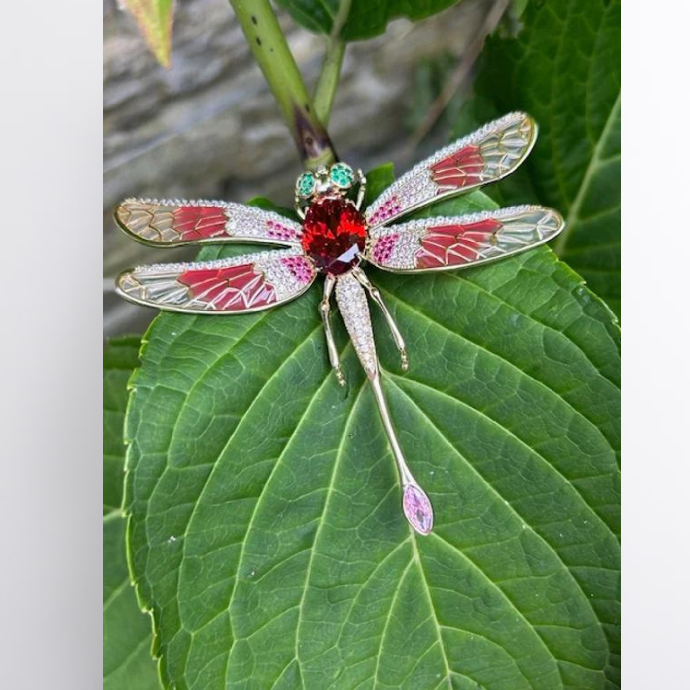 Dragonfly Brooch with Flexible Wings – Amber or Red