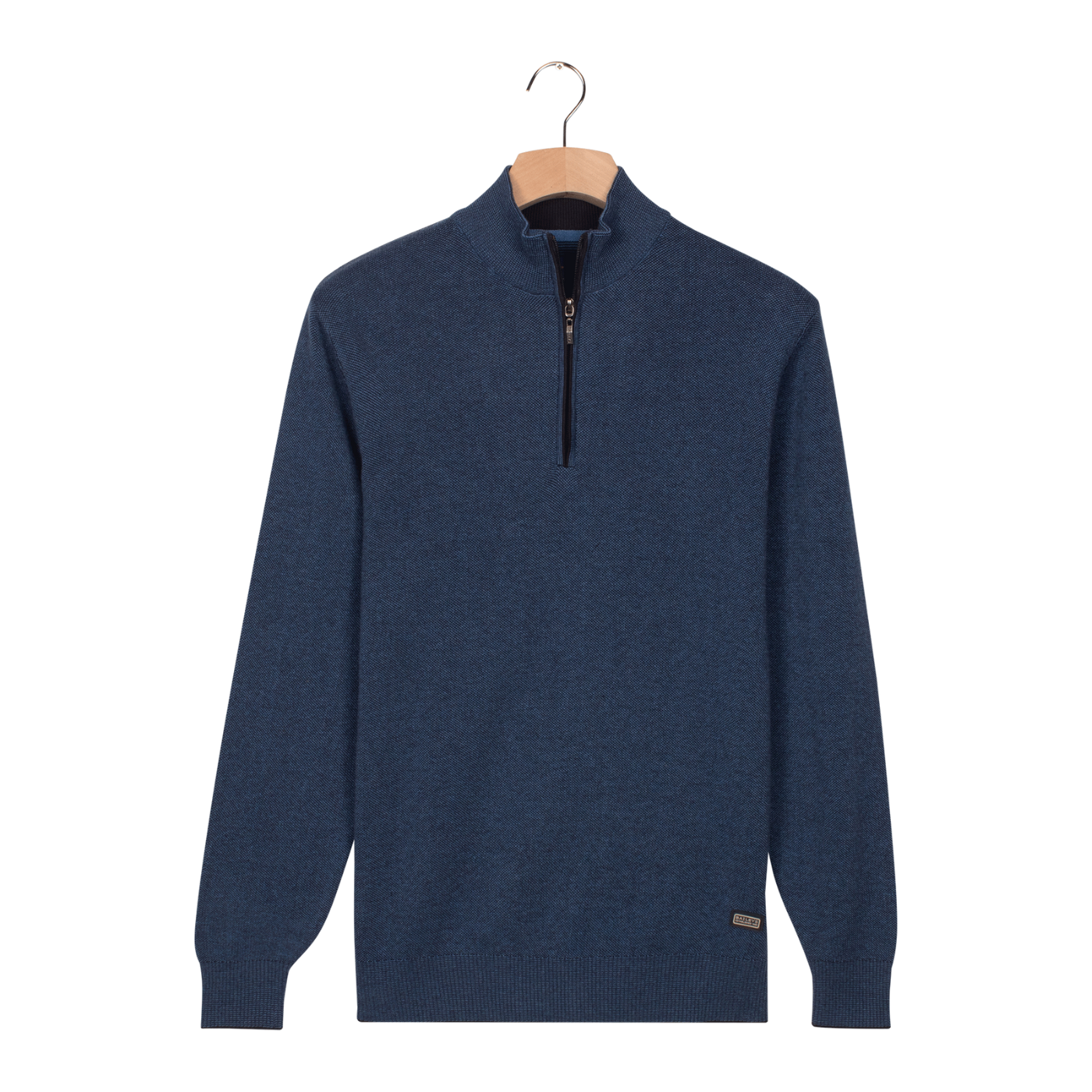 - Geoghegan's Notes: Comfortable and smart is the perfect description for this textured half zip sweater.