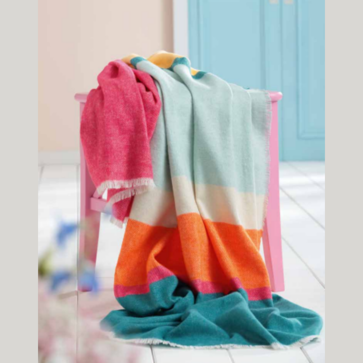 - Geoghegans Notes: The Biederlack Plaid: Happy Stripe brings a cheerful pop of color and comfort to any space. With its vibrant, striped design, this cozy throw adds warmth and style to your sofa or bed. Crafted from soft, high-quality materials, it’s perfect for curling up with on a cool day or adding a touch of joy to your home décor.