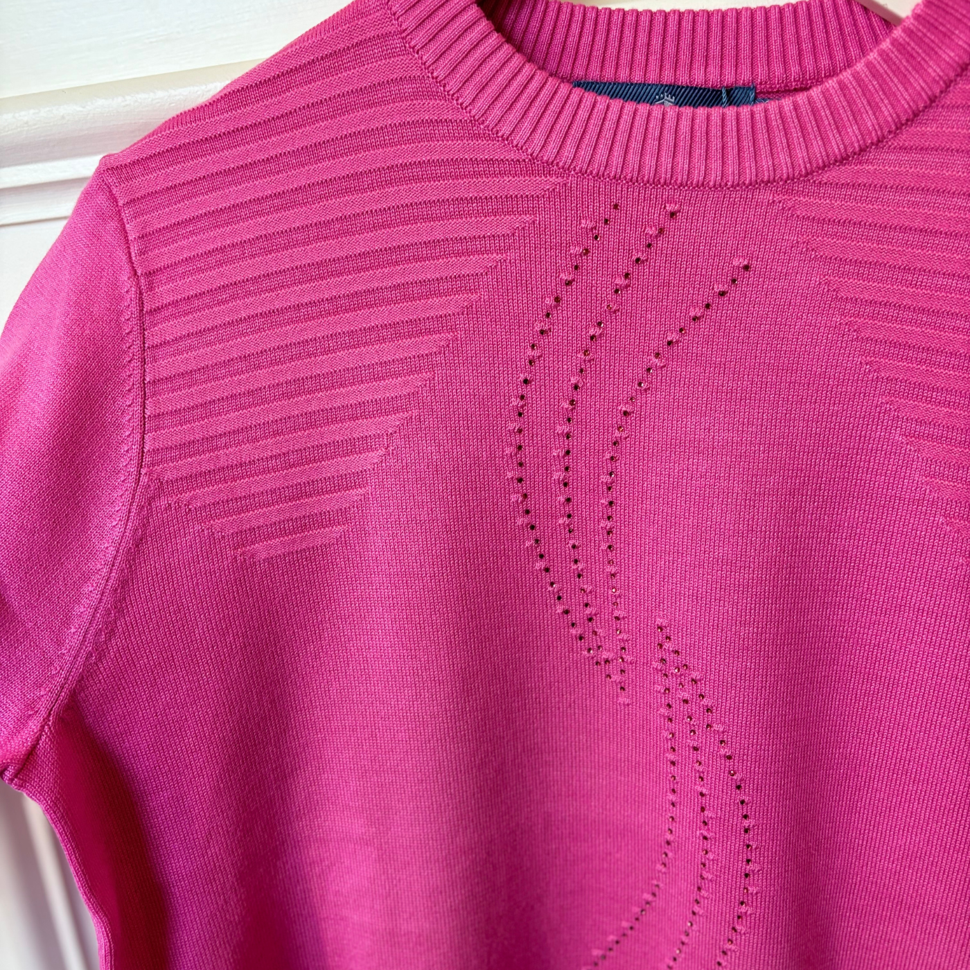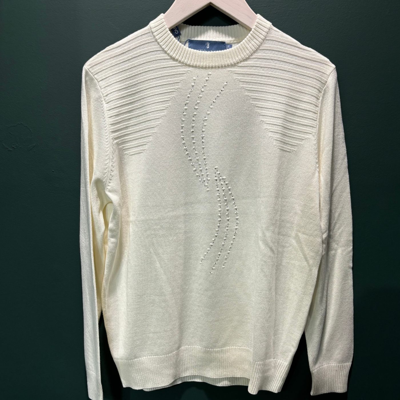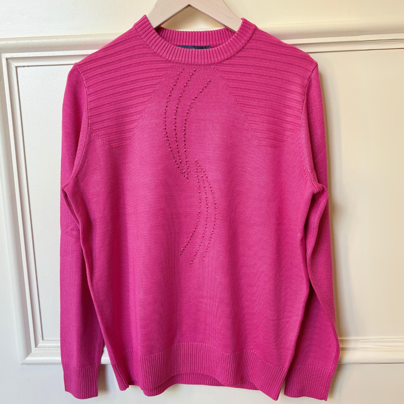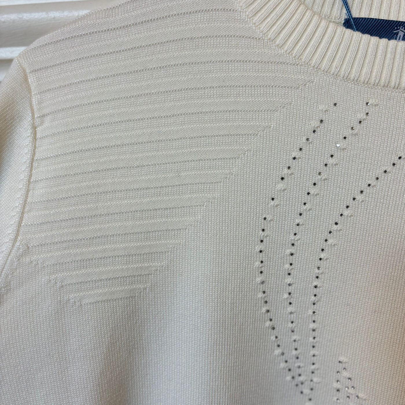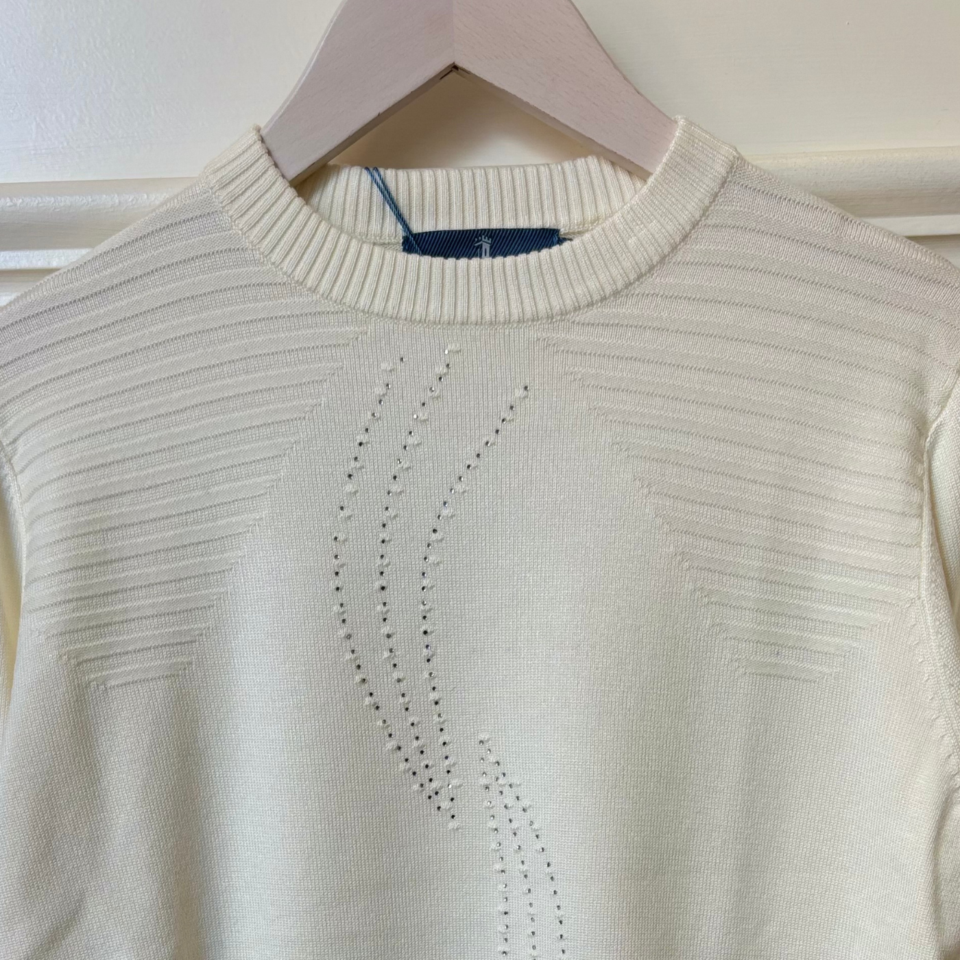 Geoghegans Notes: The Castle of Ireland Embellished Round Neck Jumper combines elegance and comfort with its striking Diamante Swirl detail, adding a touch of sparkle to your look. Ribbed shoulders enhance the fit and add subtle texture, making this jumper a stylish choice for both casual and dressier occasions.