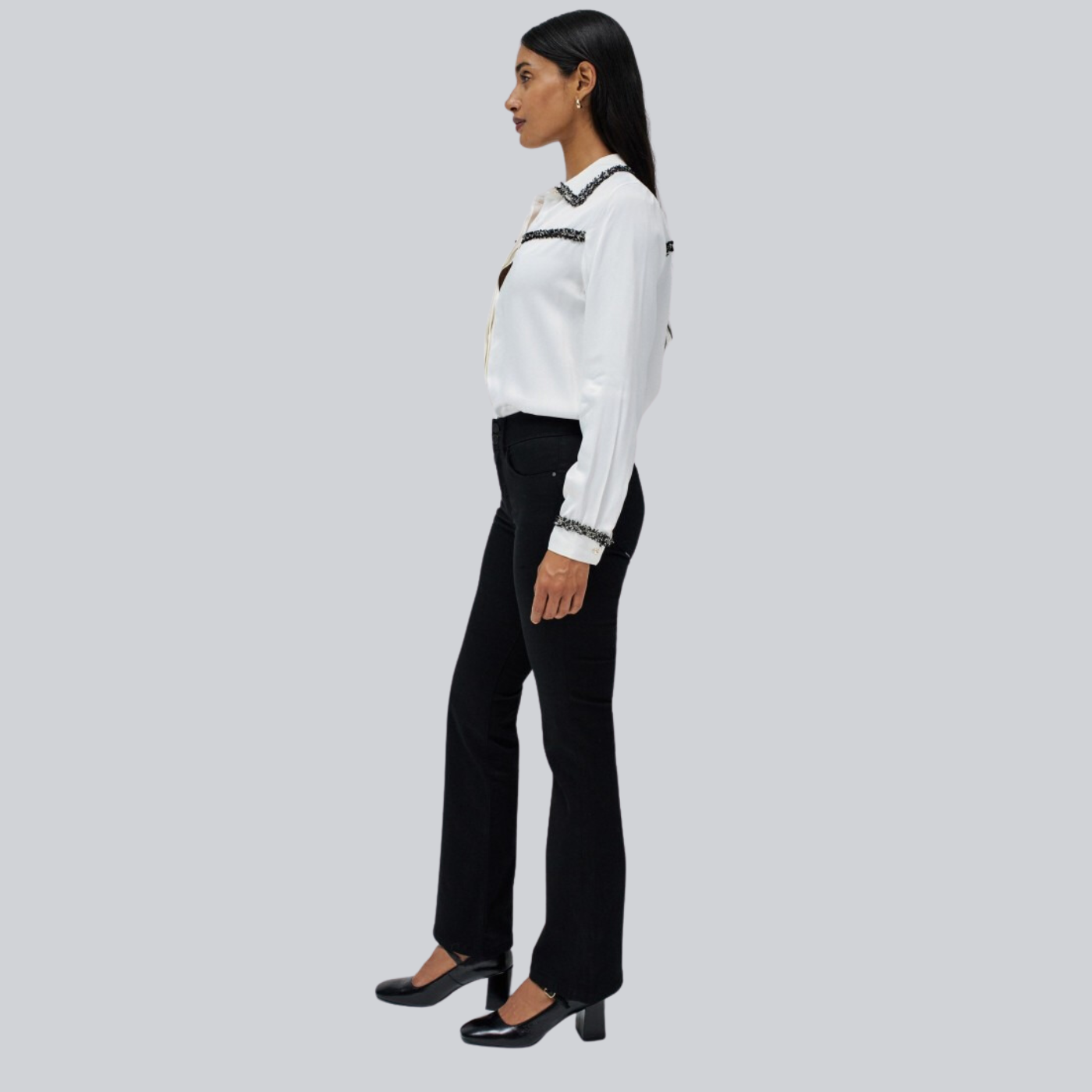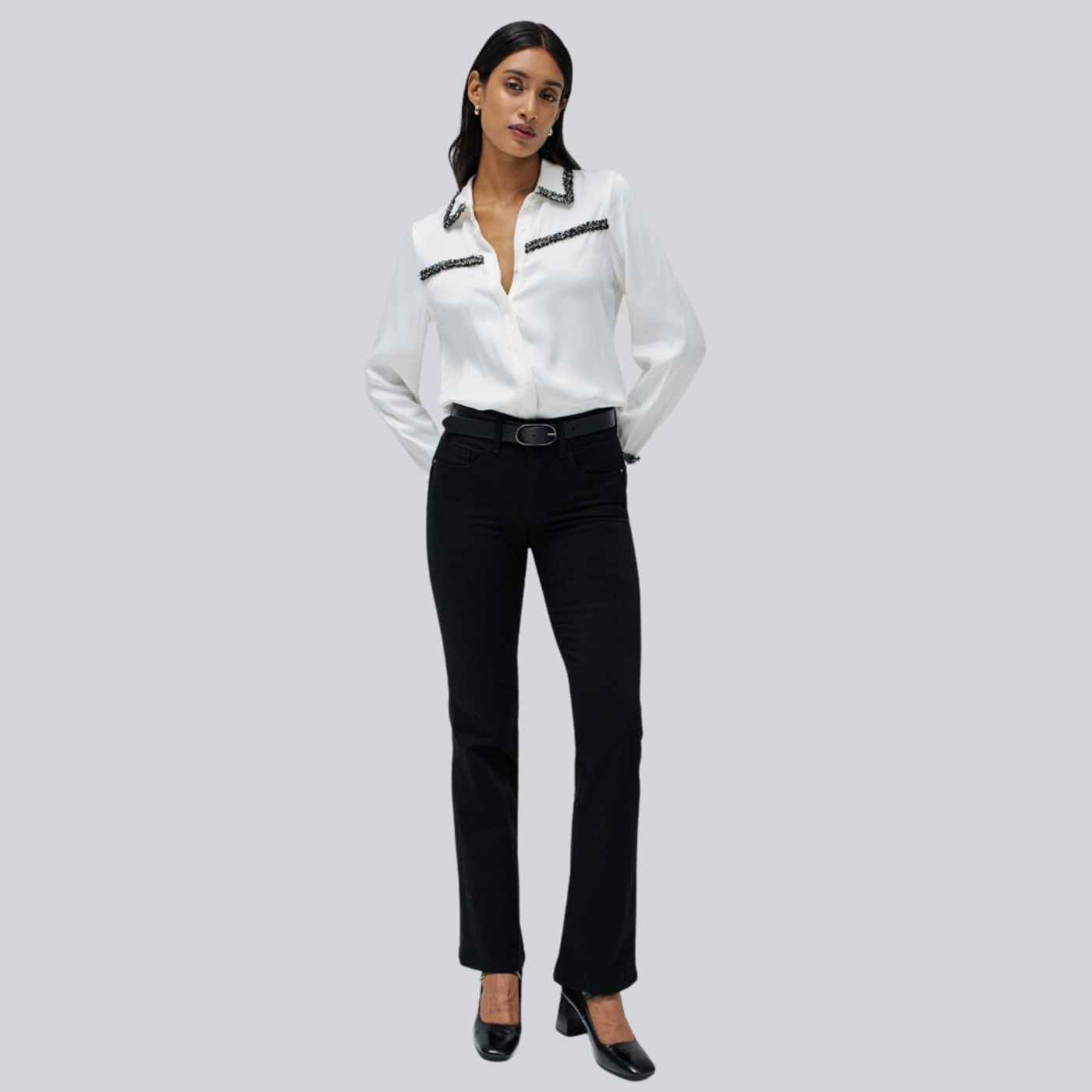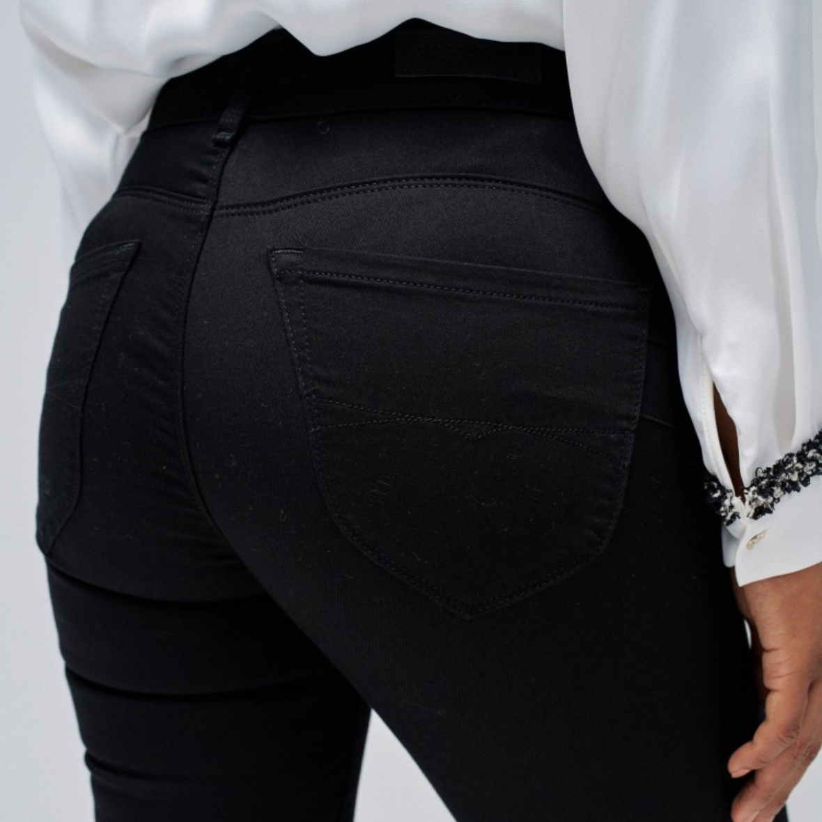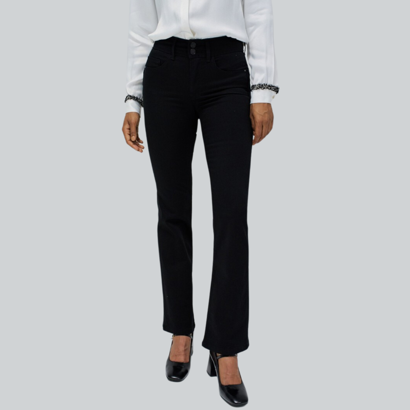 The Salsa Secret Push In Bootcut Jeans in black offer a sleek and versatile style. Designed with Salsa’s signature Push In effect, these jeans sculpt and enhance the waistline for a flattering fit. Featuring a bootcut leg and a medium-rise waist, they create a balanced and elongating silhouette. The jeans have a front opening with a zip and two-button closure for a secure fit.