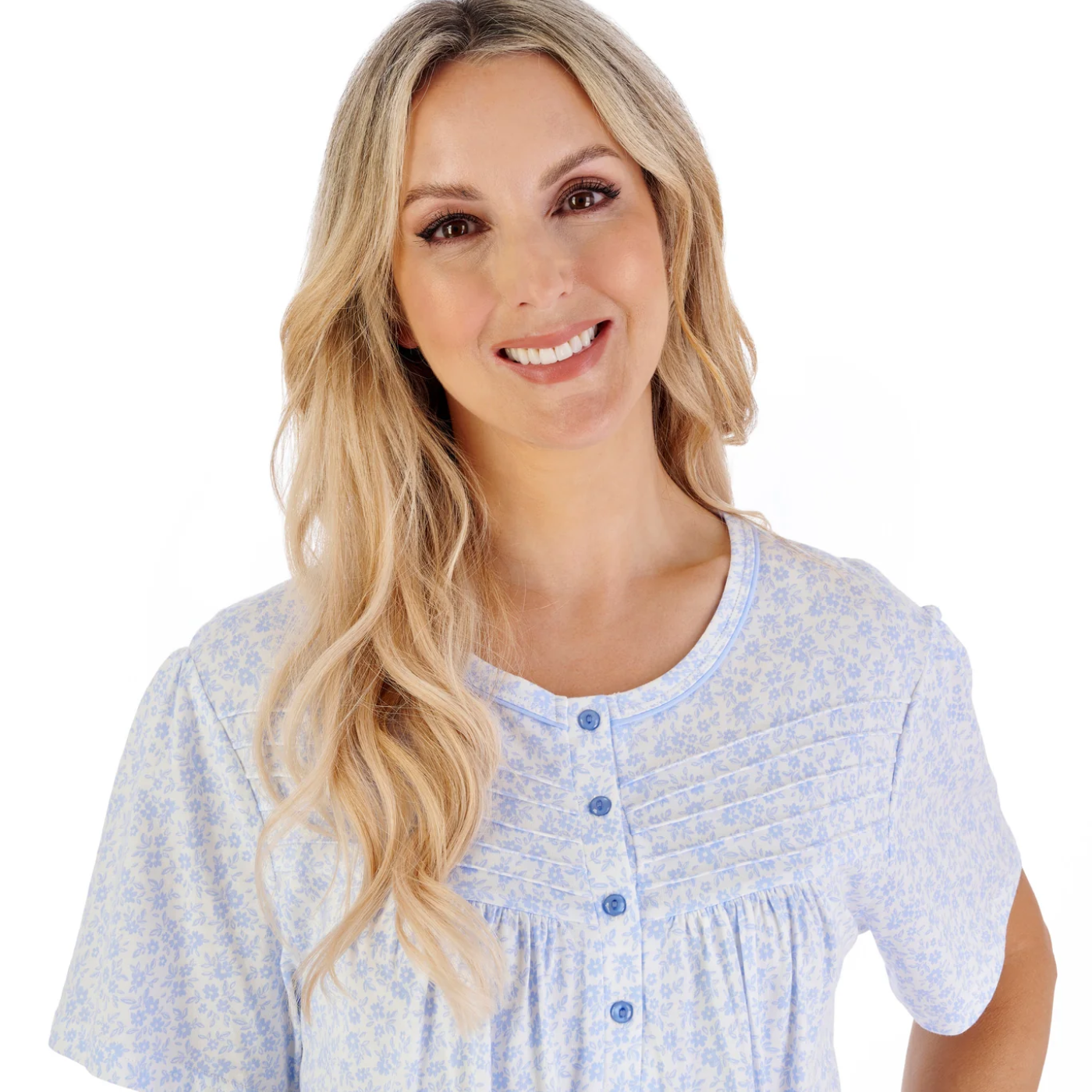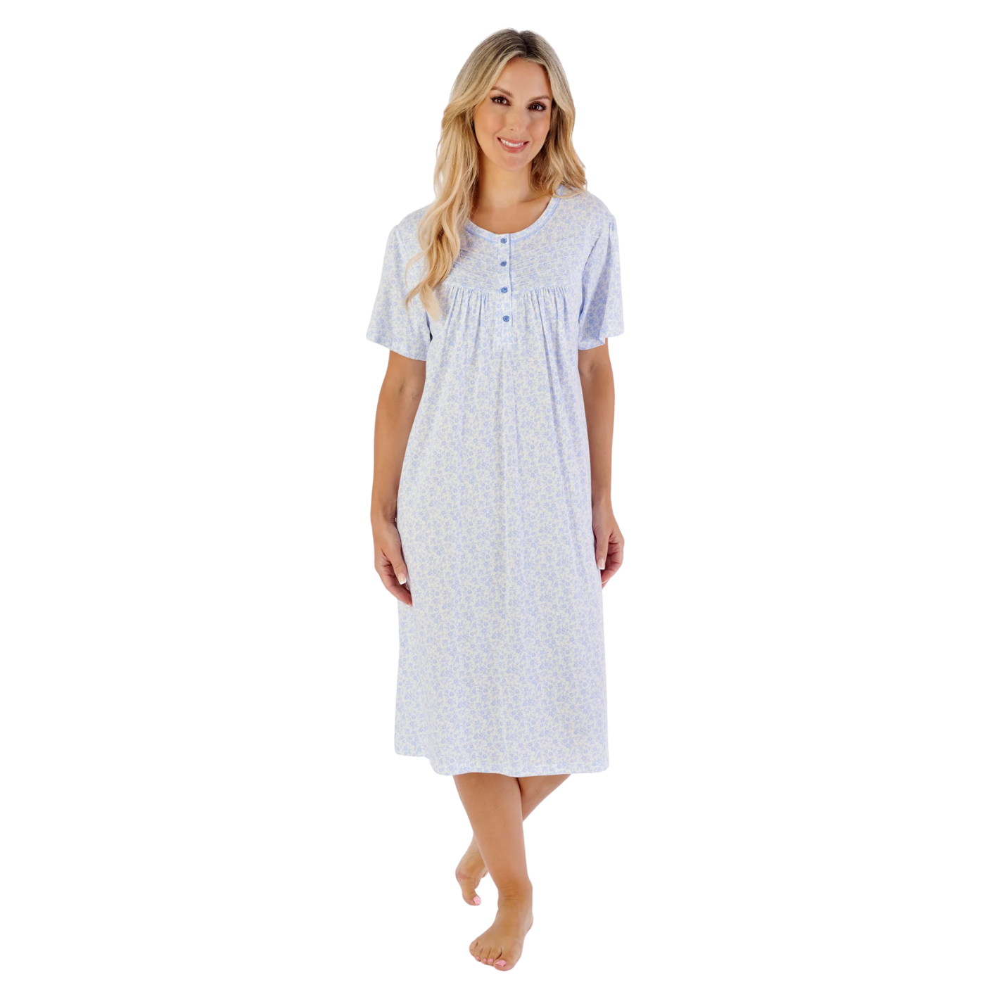 Slenderella Ditsy Floral 42" Jersey Nightdress | Blue / Pink